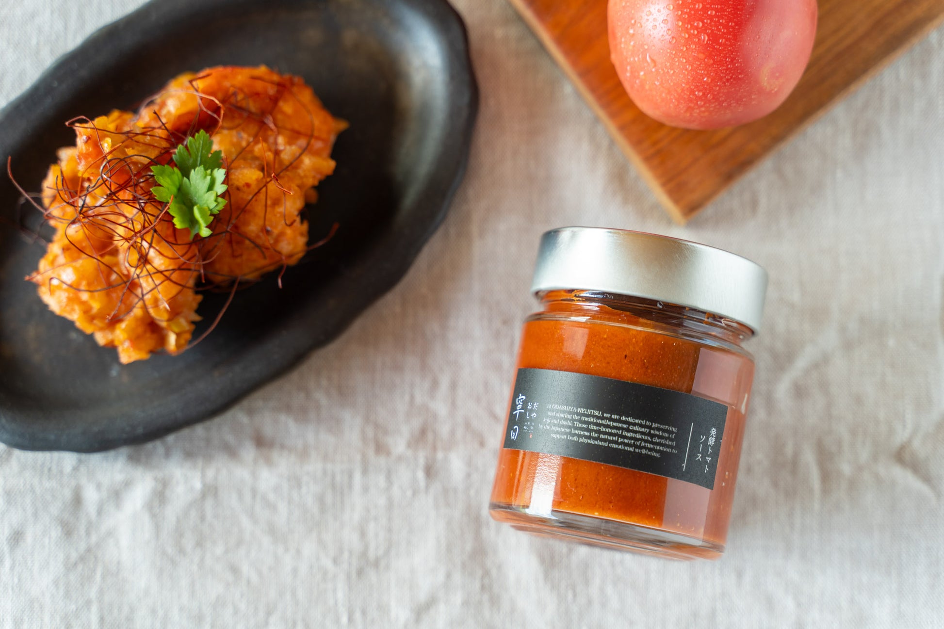 佐賀県の川副町産「たばるさんちのトマト」とふんだんに使用した発酵ケチャップ。
